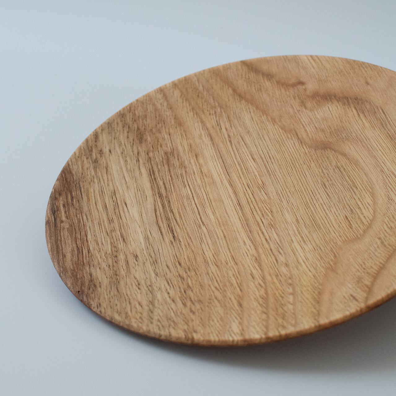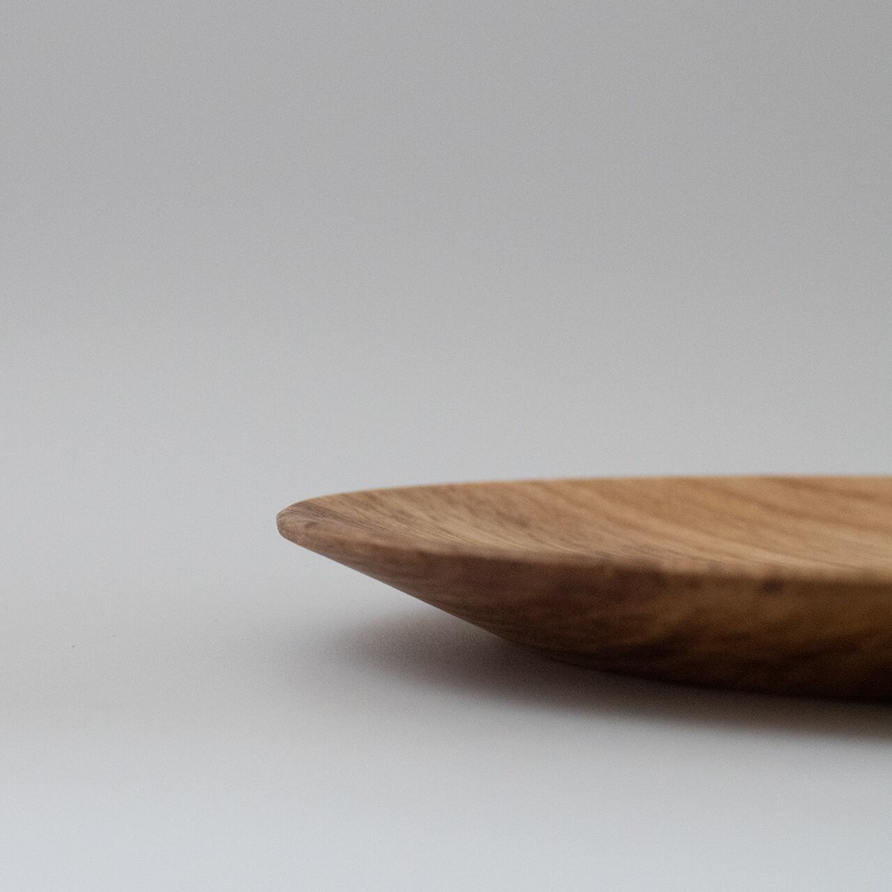 見た目とは裏腹に滑らかな質感。丁寧なヤスリがけを施しており、指や布への引っ掛かりをなるべく無くしました。まさに木のお皿というような絶妙な重さ。陶器にパンを乗せるのがガチャガチャしてしんどいという方にうってつけです。