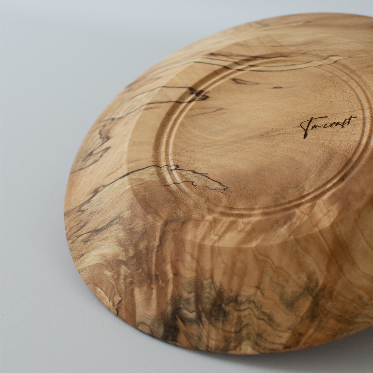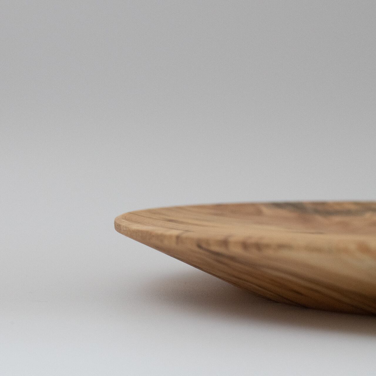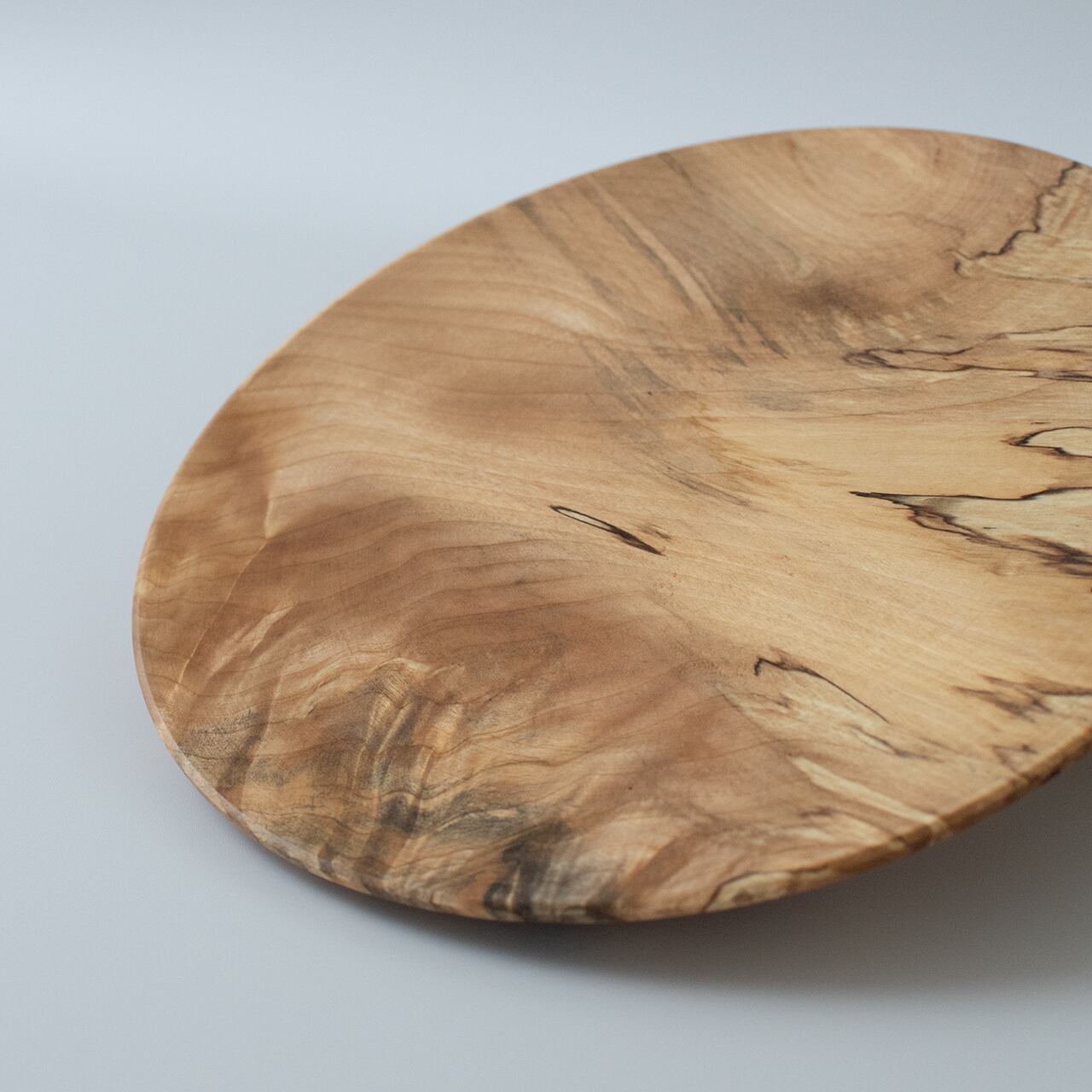 輝く杢にスポルテッドとステインが盛り込まれたヤバい一枚。まるで即興のジャズのように木が自ら書き記した、沈黙の記憶がそこにあります。見るたびに違う表情を見せる、器というよりひとつの風景。