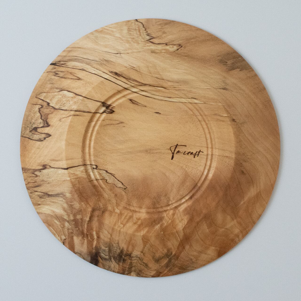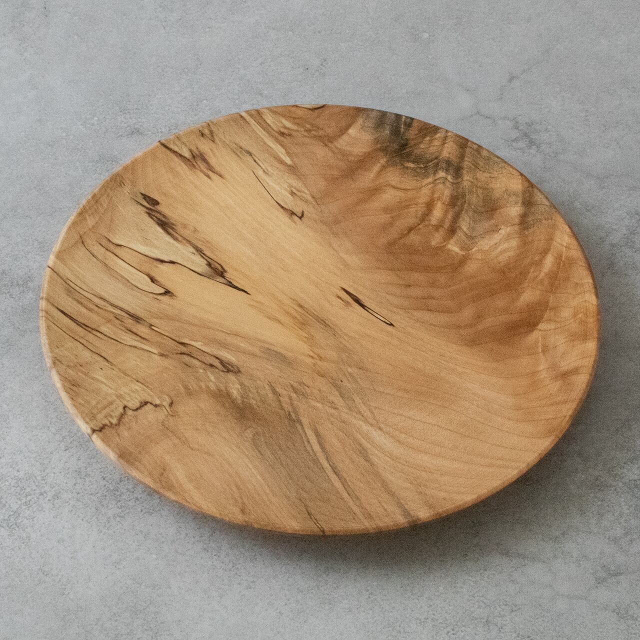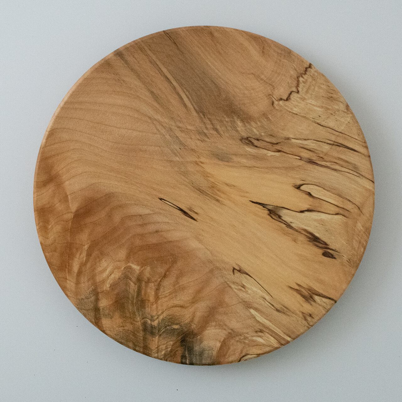 輝く杢にスポルテッドとステインが盛り込まれたヤバい一枚。まるで即興のジャズのように木が自ら書き記した、沈黙の記憶がそこにあります。見るたびに違う表情を見せる、器というよりひとつの風景。