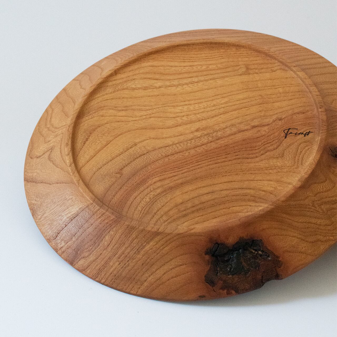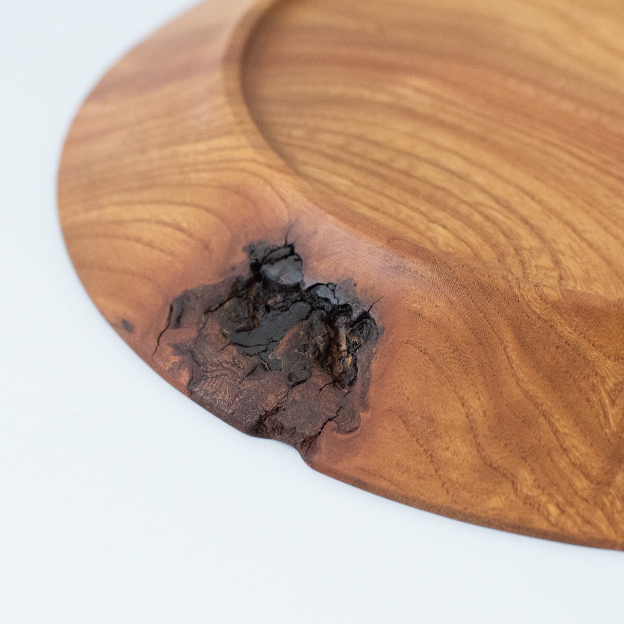 Tm craftの新しいラインナップ「銘木のリム皿」。リムのフチ部分を若干立ち上げ、持ちやすくしました。撥水性と防汚性に優れ、お手入れも楽々。こちらは【欅(ケヤキ)の木】を使用。