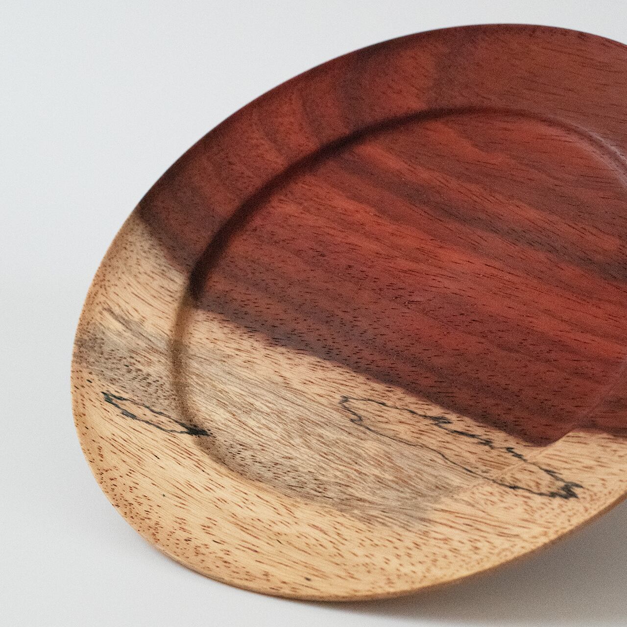 リム皿シリーズの最高峰。レアな木材や素晴らしい木目が特徴の「特別なリム皿」。撥水性と防汚性に優れた塗料で仕上げており、お手入れも楽々。こちらは【山桃(ヤマモモ)の木】を使用。