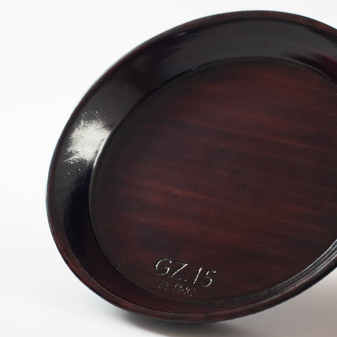 一部に国産漆を贅沢に使用したのがこの【極】。漆は基本的に1日に1回しか施工できないため、塗装だけで約2週間かけて仕上げております。表面は呂色磨きで艶のある輝き。裏面の石目塗りは傷がつきづらいのが特徴です。アウトドアシーンで気兼ねなくお使いください。直径は約15㎝。コンパクトなメインのお皿としても重宝する1枚です。GZ.12を重ねてもほとんど段差なく持ち運べます。