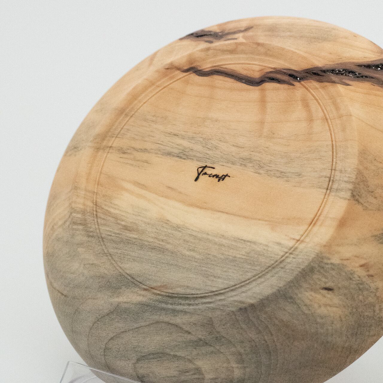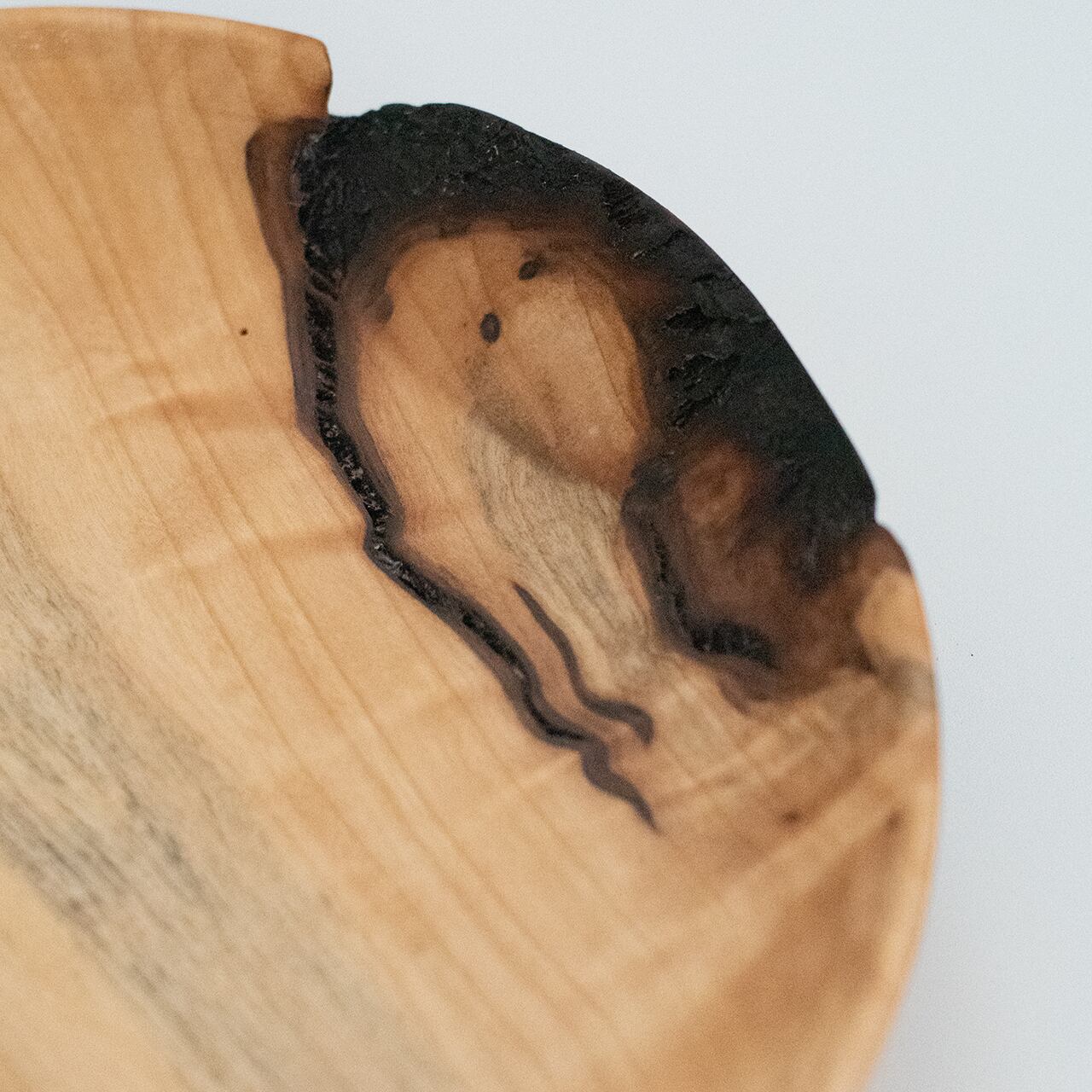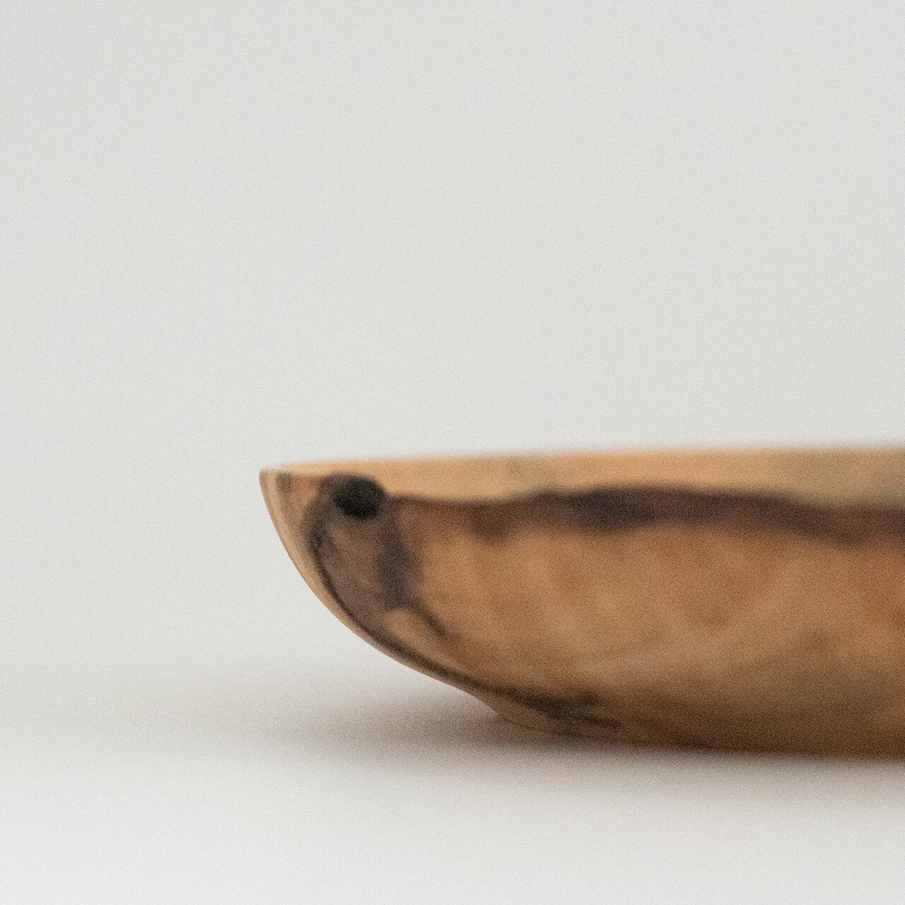 Aタイプは大胆なステインと鋭い入り皮のヒビ。Bタイプはシンプルでありながらも、さりげなく輝く杢(珍しい木目の意)が特徴的です。夜空と星を比喩したような取り皿。