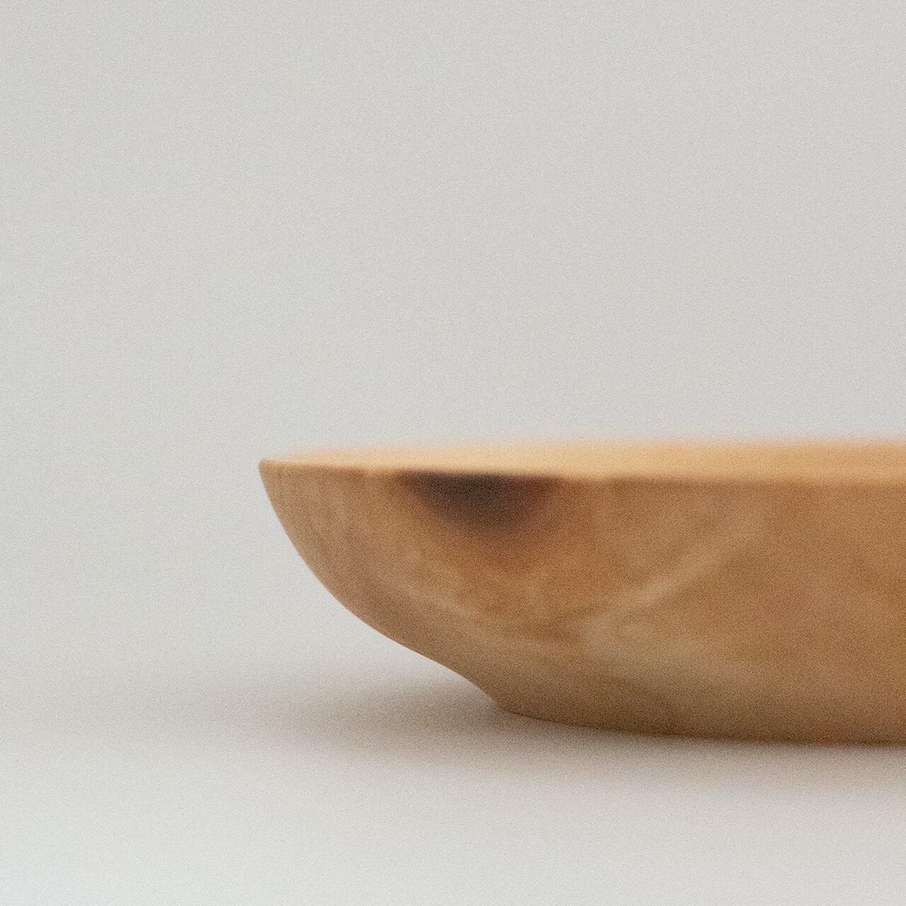 毎日の食事で手軽に使えるのが「日常の取り皿」シリーズ。防水加工済みなので、陶器の食器と同じように洗剤で洗うことが可能です。こちらは【栃(トチ)】を使用。