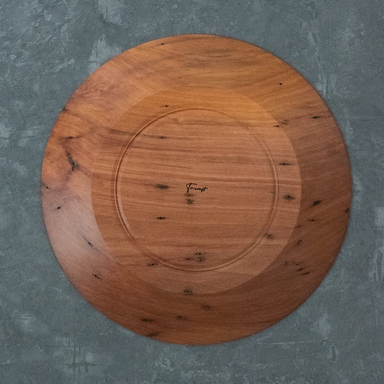 表面に施された彫り模様がパンの熱気を逃がし、焼きたてのサクッとした食感が長持ち。木のデメリットである「反り」を抑えるため、食品衛生法に適合した安全な塗料で下地をしっかり補強。木肌の質感が程よく残るよう仕上げました。毎日の食卓を特別にしてくれる、ニュースタンダードなプレートです。もちろんパン皿以外にもご利用いただけます。
