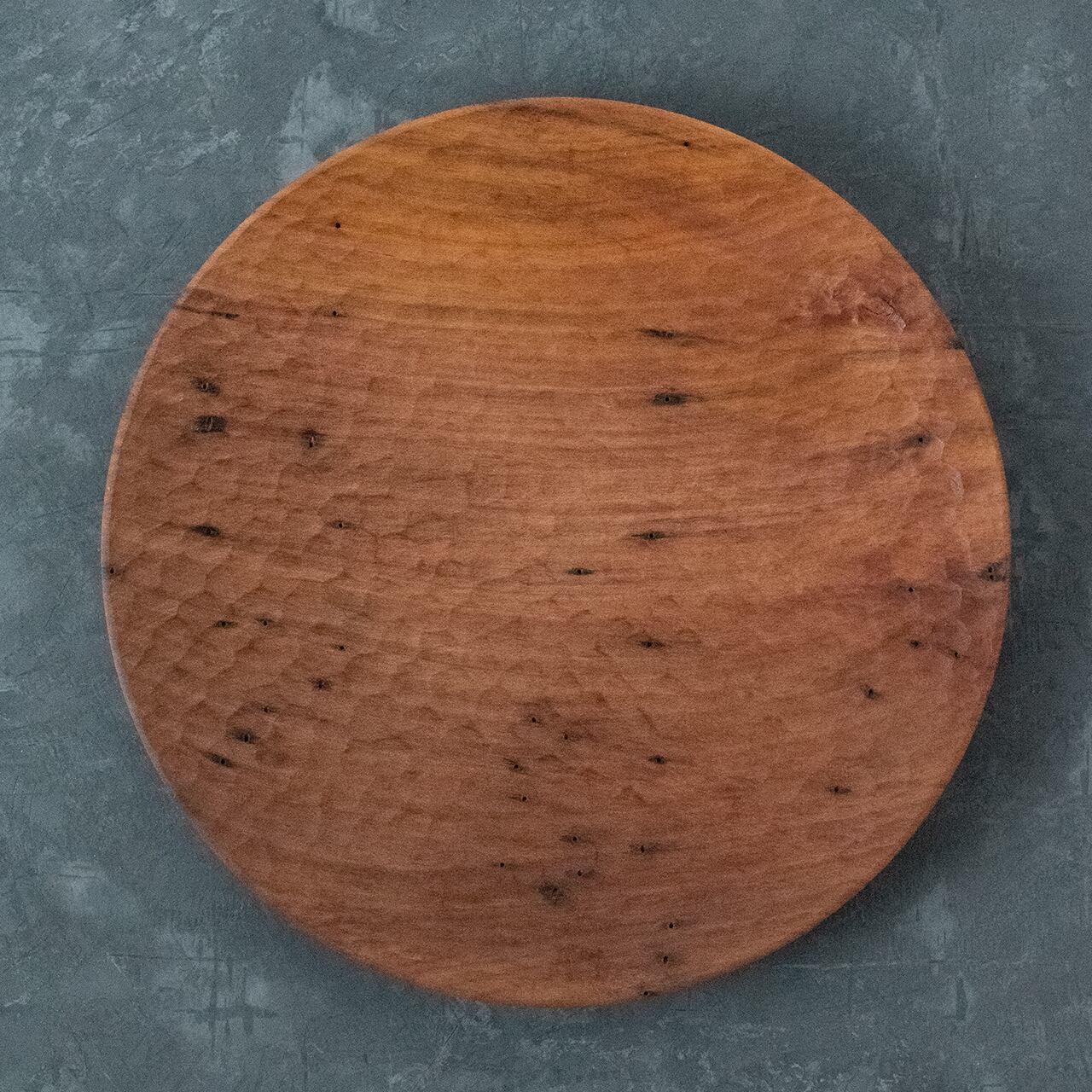 無数の小さな穴は他の生き物がそこに居た証。そして木が抵抗したであろう黒ずみ。自然の循環が刻まれた面白い一枚です。小さな穴により水漏れしますが、そのデメリットを感じさせない個性は唯一無二。