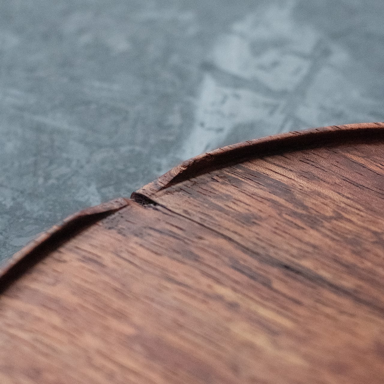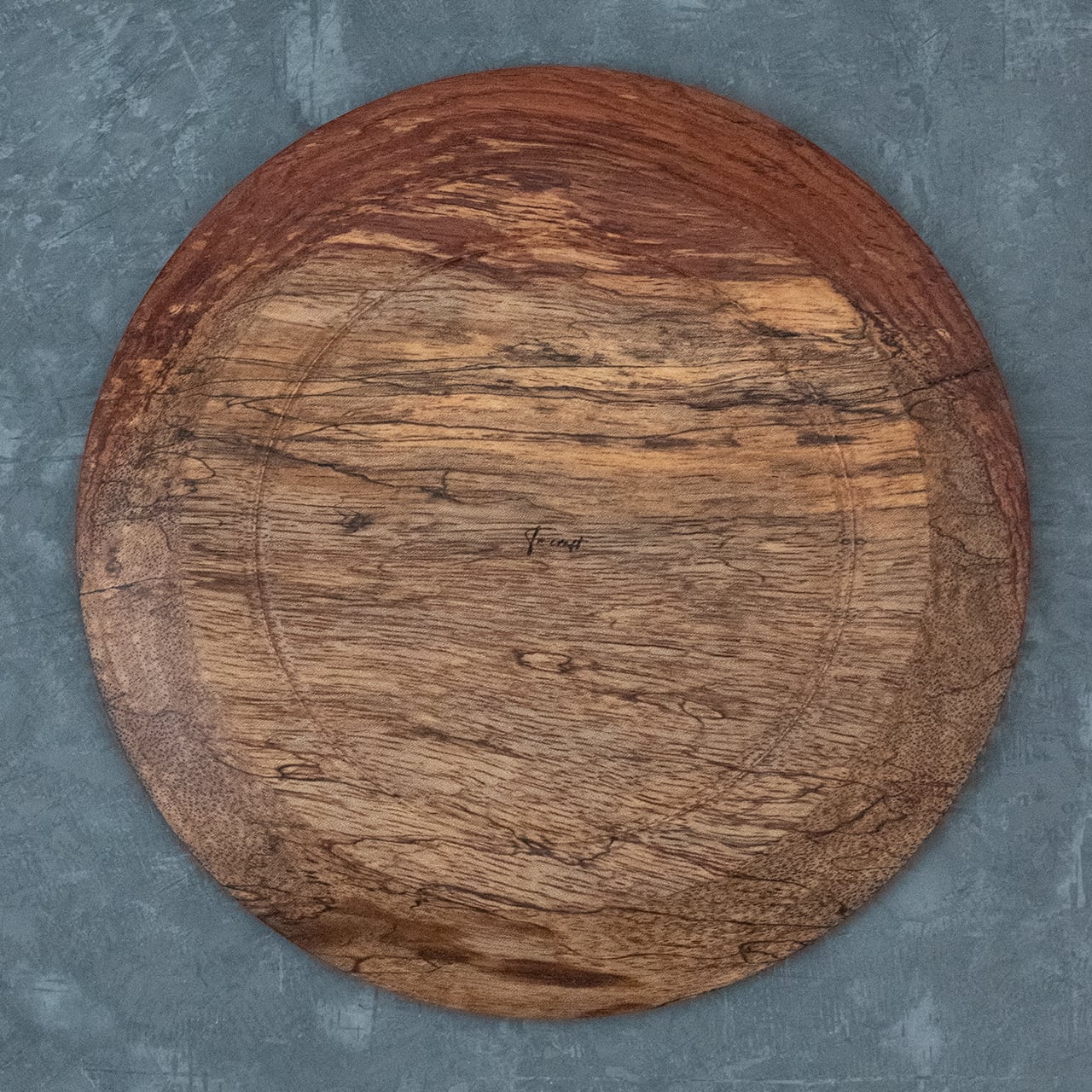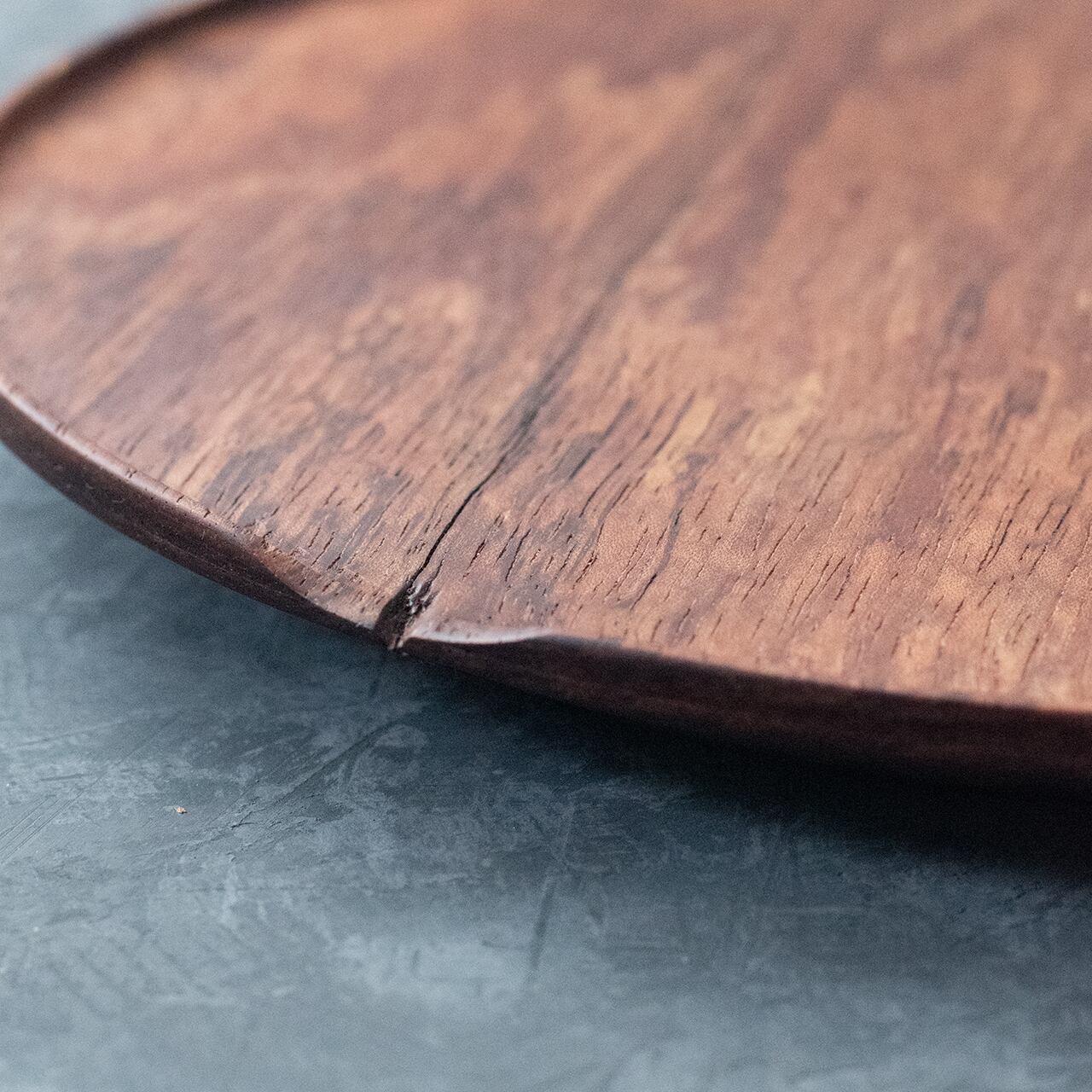 格別な存在感。なかなかお目にかかれない貴重な木を、重厚感たっぷりの約360g(缶ビール350ml位の重さ)のプレートに仕上げました。赤茶と白の珍しい2色使いに加え、所々に現れる黒い線。これはスポルテッドという木の珍しい特徴【杢(もく)】です。お皿としてだけでなく、ディスプレイとしてもおすすめ。